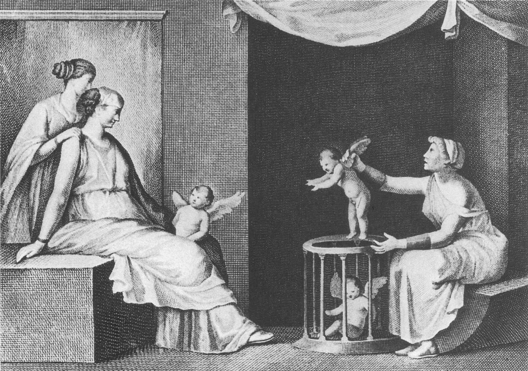 これはローマ市民社会における正妻(マトローナ)像に近いです。彼女はすでに「制度的な愛(結婚)」の中にいます。そして、アモルを買うかどうかを考えています。これをどう読み解くかも、また深淵ですね・・・。